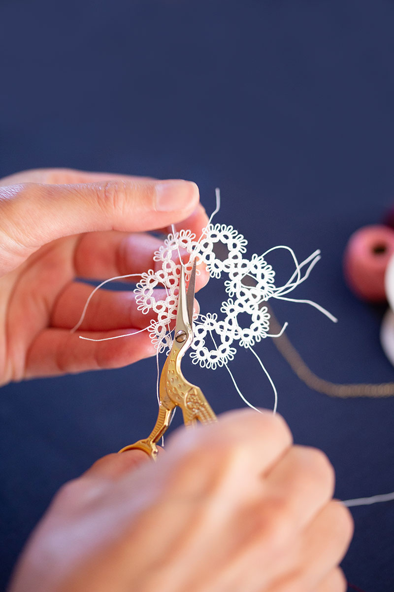 Quand on regarde la frivolité ainsi, je mesure le cadeau que je m’offre d’y consacrer tout ce temps, et de vous le faire découvrir à travers mes créations contemporaines.