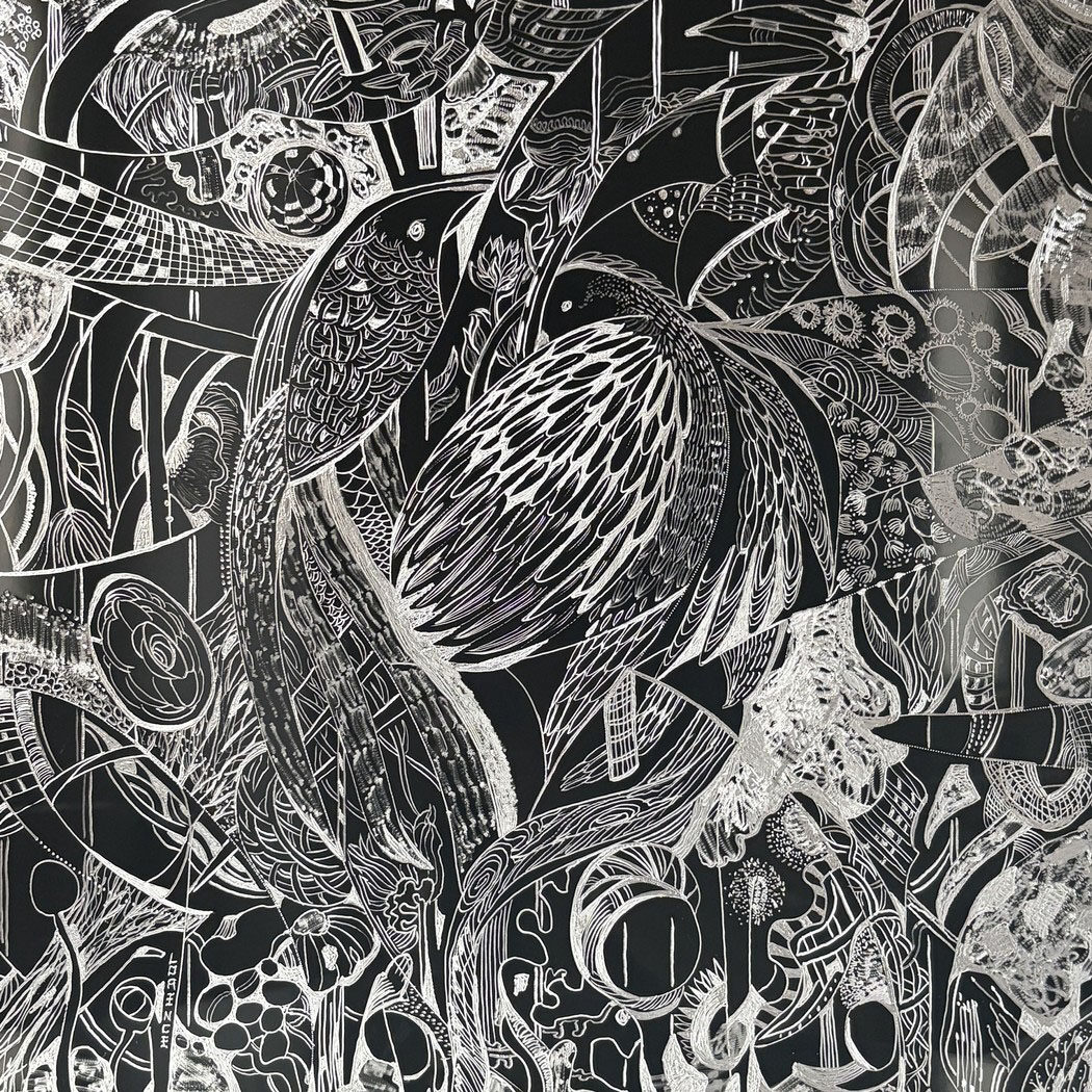 Les formes, elles, migrent d’un élément à l’autre : le poisson semble flotter dans le ciel et se fait constellation, les fleurs sont terrestres et aériennes.